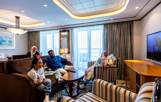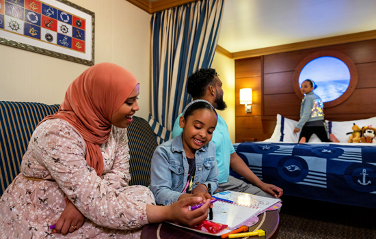 Disney Cruise Line staterooms are among the most spacious at sea, designed with families in mind, all taken care of with twice-daily housekeeping and evening turndown service. The 24-Hour Room Service will allow you to Enjoy breakfast, a quick snack or a late-night treat at any hour, all from the convenience of your room.