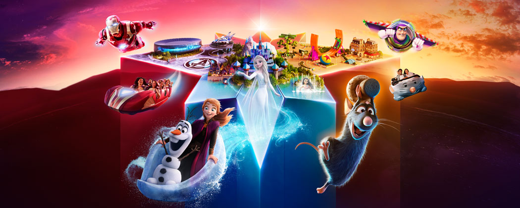 From 29 March 2026, Walt Disney Studios Park becomes Disney Adventure World. with much, Awaken your spirit of adventure at Disney Adventure World. Prepare to explore extraordinary worlds whereimmersive landscapes, jaw-dropping attractions, spectacular shows and one-of-a-kind encounters withCharacters let you live the stories you love. Feel like a real citizen of Arendelle at the enchanting new World ofFrozen – opening March 29 2026. Team up with Super Heroes in Marvel Avengers Campus. Dive into the actionwith Pixar pals in Worlds of Pixar. And discover the delights of Adventure Way – a stunning new gateway to theseworlds and a unique setting for an epic new nighttime lake spectacular and much more to discover.
