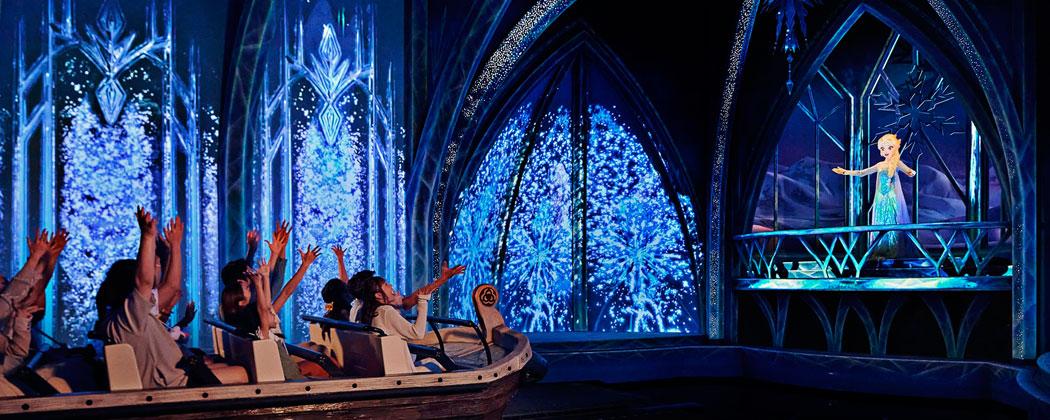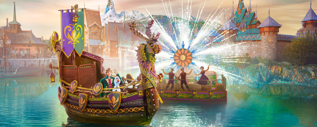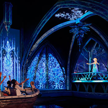 Set sail from the royal docks and travel through village and forest, drift past Troll Valley and glide up The North Mountain as the landscapes and legends of Frozen come to life around you.